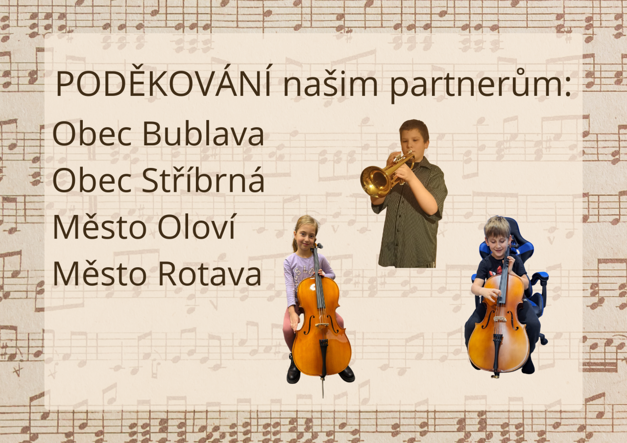 Rádi bychom touto cestou poděkovali okolním obcím, které nás v letošním školním roce opět podpořily finanční dotací. Velmi si vážíme toho, že umělecké vzdělávání v našem regionu má ve vás své pevné partnery.